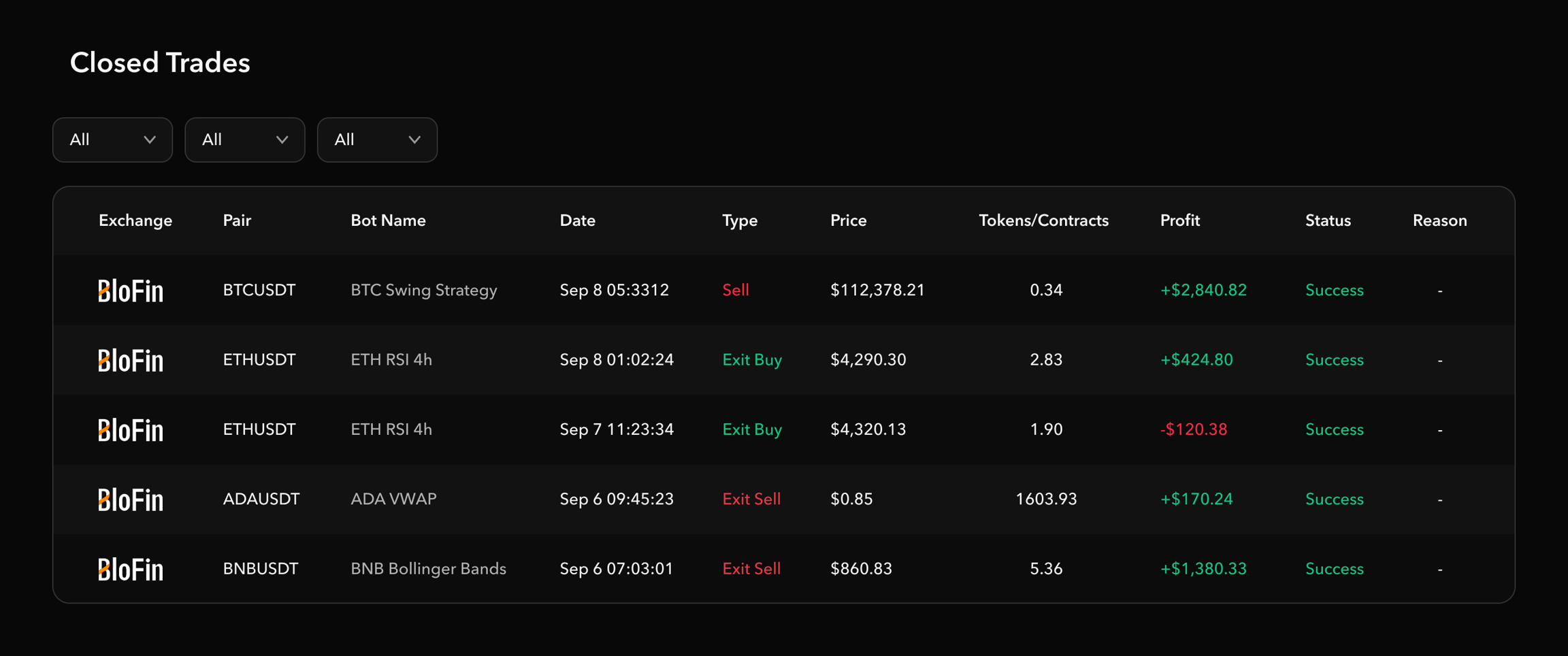 Closed Trades Table β