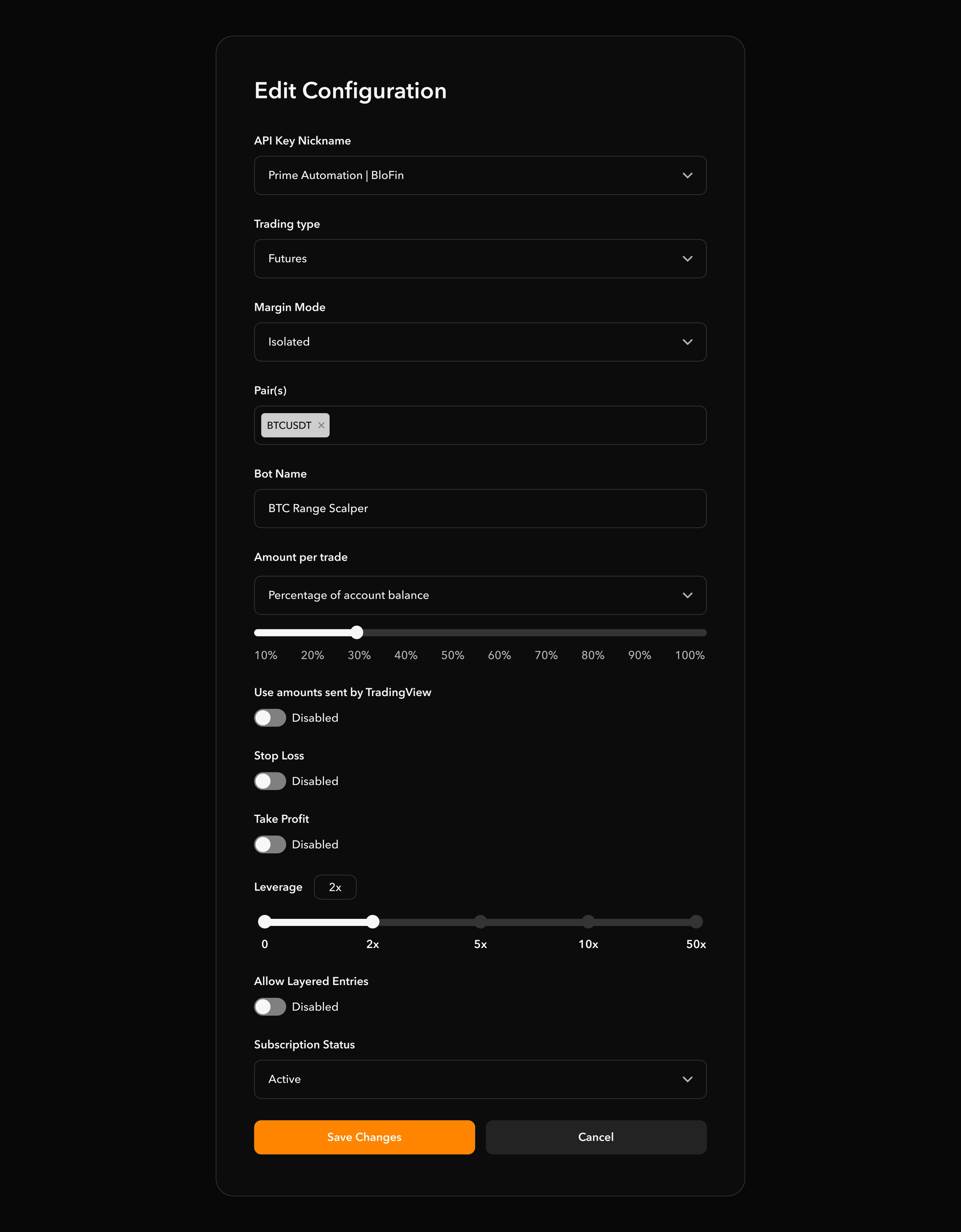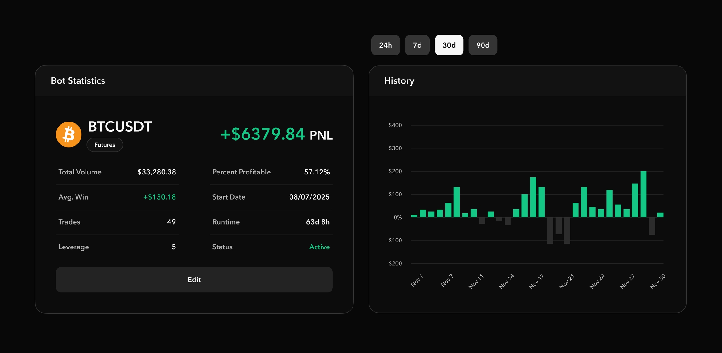 The Edit Bot Panel is where you take full control over each strategy — giving you the flexibility to: